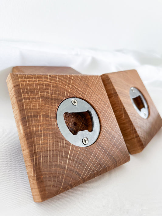Handgefertigter Eichenholz Untersetzer mit integriertem Flaschenöffner